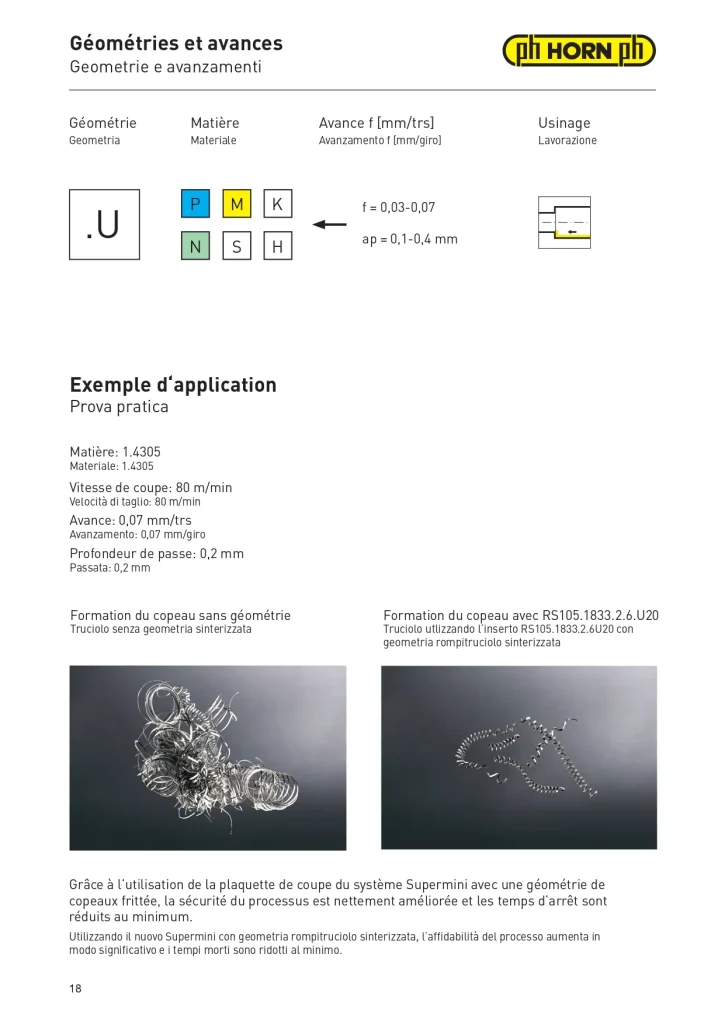 HORN - Nouveaux brise-copeaux frittés sur grains d'alésage type 105